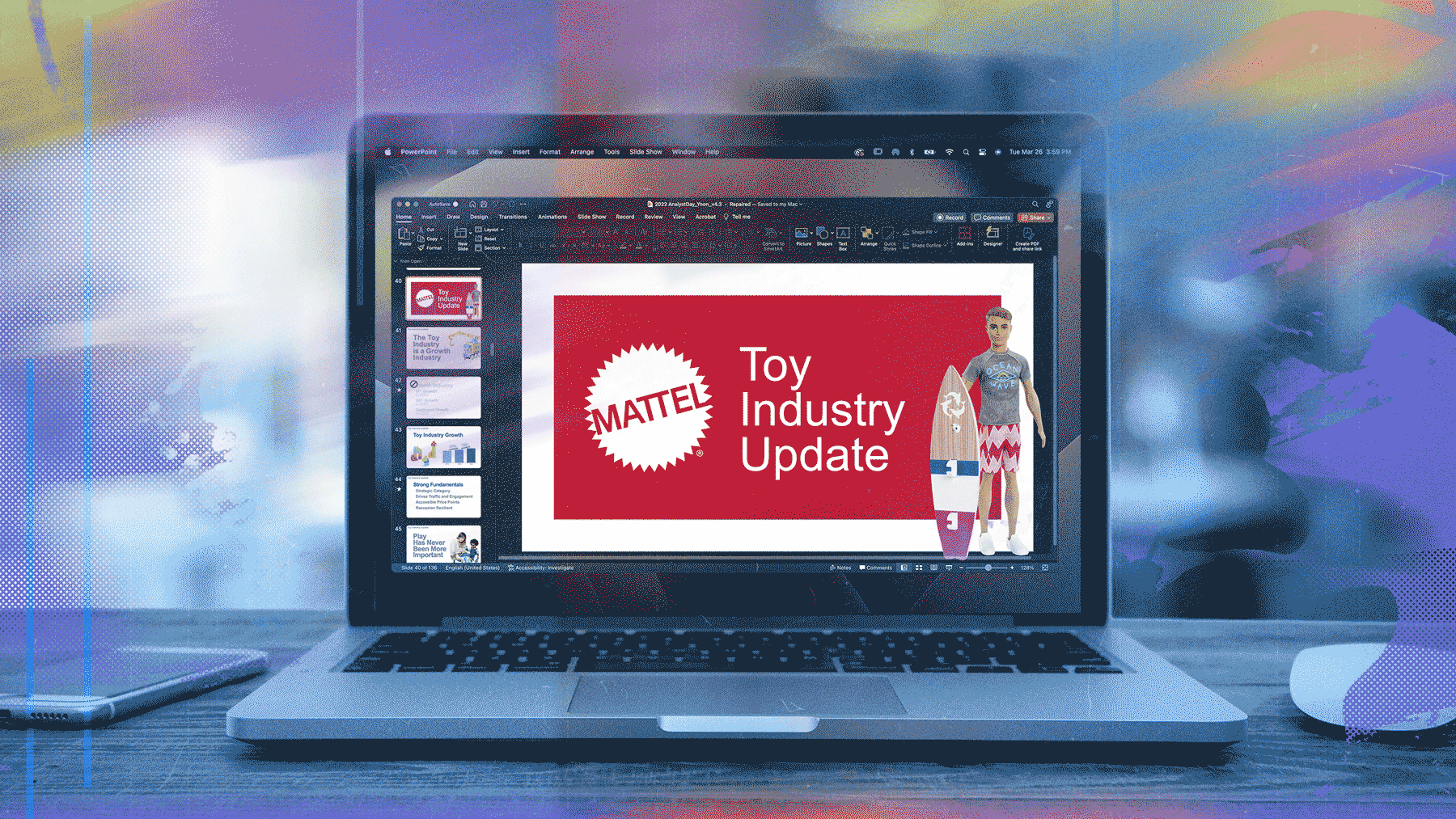 The presentations for this virtual event held significant weight as Mattel aimed to communicate the future trajectory of their products and brand to their stakeholders. Recognizing the critical importance of each slide, we collaborated closely with the Mattel team to meticulously dissect the content, ensuring its accuracy and visual appeal for the online audience. Through this concerted effort, we not only upheld the integrity of their messaging but also enhanced its impact, facilitating clear and engaging communication of Mattel's strategic vision and initiatives.